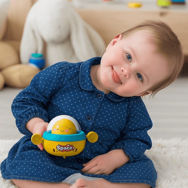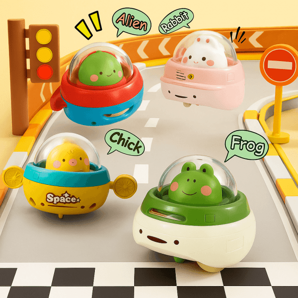 Jemným zatlačením sa vozidlo s kuriatkom pohne dopredu a povzbudzuje dieťa k pohybu a objavovaniu. Jednoduchá, ale zábavná hračka, ktorá rozvíja motoriku a zvedavosť.